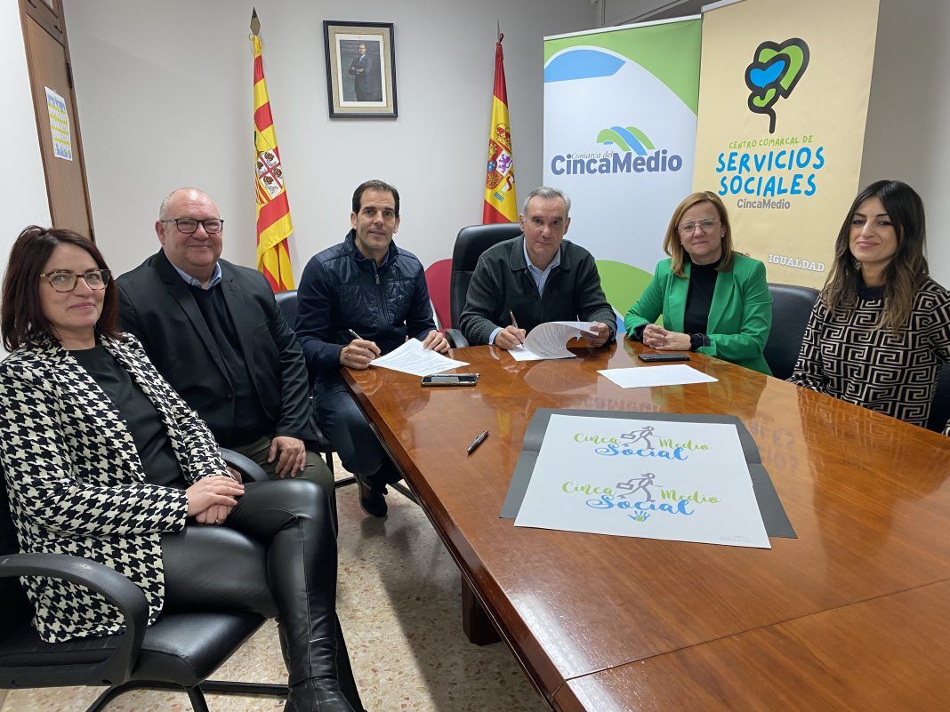 Cinca Medio Social nace fruto del convenio firmado esta mañana entre Somontano Social y la Comarca del Cinca Medio para establecer un marco de colaboración e incorporar al mercado laboral a personas con discapacidad y promover así su inclusión social y laboral en el territorio. El acuerdo lo han ratificado el presidente de Somontano Social y de la Comarca, Daniel Gracia, y el presidente de la administración supramunicipal mediocinqueña, José Ángel Solans, acompañado por la vicepresidenta María Clusa y la responsable de los Servicios Sociales, Yolanda Encinas. A la reunión también han asistido el gerente del centro especial de empleo, José María Calasanz, y la responsable de recursos humanos, Pilar Planas.