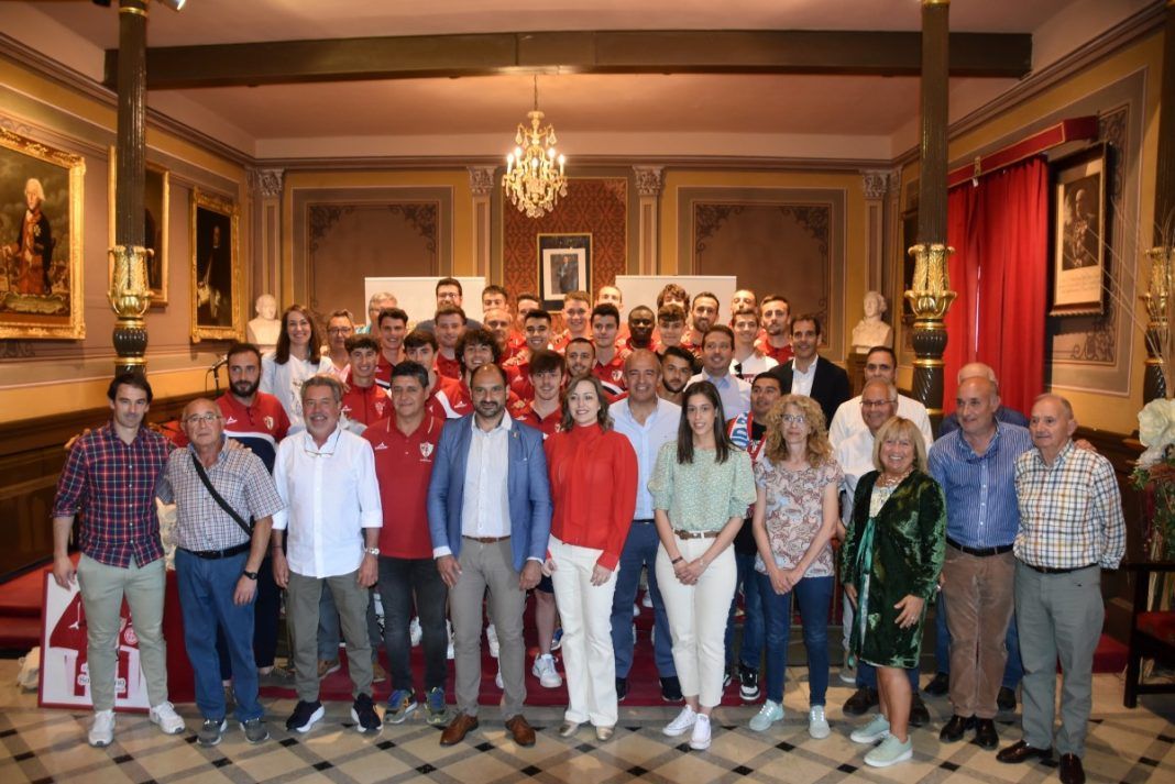 Jugadores, cuerpo técnico y directiva del club rojiblanco han sido recibidos por el alcalde y varios miembros de la corporación municipal.