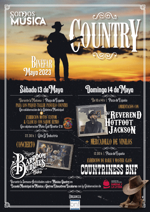 El country llegará a Binéfar el sábado 13 y el domingo 14 dentro del programa cultural “Somos Música 2023″, un evento organizado por el Ayuntamiento de Binéfar en colaboración con distintas entidades de la localidad. En la jornada los visitantes podrán disfrutar de actividades para los más pequeños de la casa, exhibición de motos, conciertos musicales y un mercadillo de vinilos . El concejal de Cultura del Ayuntamiento de Binéfar, Juan Carlos García Cazcarra, ha invitado a todo el mundo a disfrutar de un fin de semana musical.