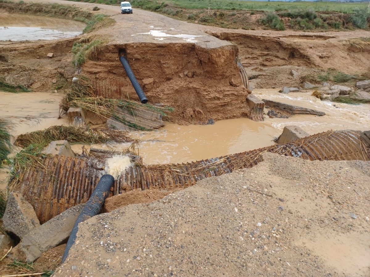 Asimismo, hubo afectaciones en otros puntos de la comarca del Cinca Medio, en caminos, carreteras y demás infraestructuras municipales. En cuanto a los cultivos, la lluvia y el granizo ha afectado a un millar de hectáreas de la zona y se calcula que en torno a 300 hectáreas de cereal tendrán pérdidas del cien por cien.