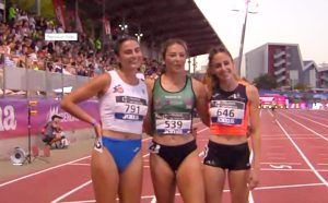 La atleta de Ballobar, Elena Daniel Sorolla, se ha colgado este sábado una sobresaliente medalla de bronce en la prueba de 100 metros del Campeonato de España Absoluto de Atletismo, que se está disputando el fin de semana en Torrent. La atleta del club Fraga Bajo Cinca, tras superar el viernes la primera ronda, este sábado lograba el pase en semifinales al ser segunda de su serie, haciendo una carrera sólida y suficiente para lograr el pase a la final. Y en la gran final, pasadas las nueve y media de la noche, Elena ha hecho una carrera progresiva, de menos a más, para colgarse un fantástico bronce que completa una temporada de ensueño en la que logró el oro en el Campeonato de España de su categoría, Sub 23, hace menos de un mes, y disputó el Europeo Sub 23, en el que llegó a semifinales. En la imagen, Elena (izquierda) posa con sus dos compañeras en el podio.