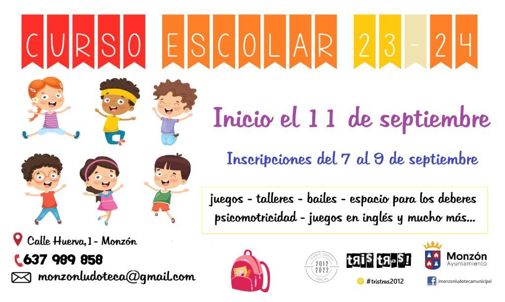 La Ludoteca Municipal de Monzón está trabajando en los últimos detalles del nuevo curso 2023-2024 con diferentes actividades y propuestas para niños que tienen entre 1 y 12 años de edad. El servicio municipal, gestionado por la Asociación Tris Tras, abrirá el plazo de inscripciones del día 7 al día 9 de septiembre para comenzar el lunes, día 11.