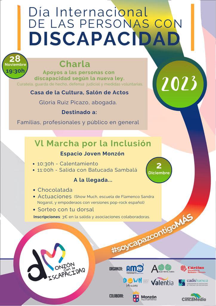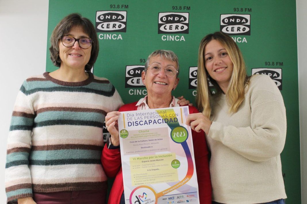 El próximo 3 de diciembre celebra el Día Internacional de las personas con Discapacidad y en Monzón se aprovecha la fecha para celebrar la marcha por la inclusión que este año cumple seis ediciones. Una iniciativa que pretender captar la atención y el apoyo de los montisonenses con una andada, que arrancará en el Espacio Joven con un calentamiento, a partir de las 10:30h, con salida a las 11:00h con la Batucada Sambalá. Tras la andada, chocolatada y las actuaciones de Show Much, escuela de flamenco Sandra Nogarol y empoderaos con versiones pop-rock español. Un nutrido programa para que todos y todas puedan disfrutar y reivindicar un mundo mucho más inclusivo, a todos los niveles. De todo ello hablamos con María Ángeles Delgado, Montse Isard y Elisa Torres.