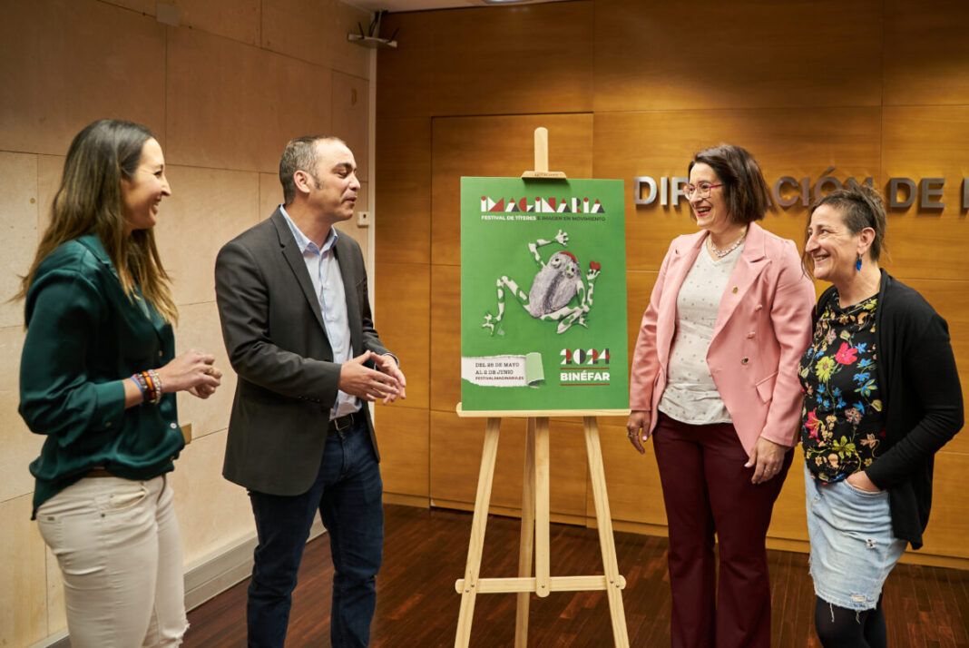 El acto de presentación del cartel y el programa de la edición 2024 del Festival IMAGINARIA, que ha tenido lugar esta mañana en la Diputación Provincial de Huesca, ha contado con la intervención del Diputado de Cultura, Carlos Sampériz, quién ha destacado la labor de los Titiriteros de Binéfar “que han conseguido colocar Binéfar en el mundo artístico del títere” y ha reconocido el valor de IMAGINARIA por su capacidad de “transcender los escenarios y conseguir que Binéfar respire arte, magia y sobre todo ilusión”, durante los días del festival. Por su parte, la alcaldesa de Binéfar, Patricia Rivera, ha recordado los más de 10.000 espectadores con los que contó la pasada edición, y agradecido a la organización del festival que pone a Binéfar “en el mapa nacional”.