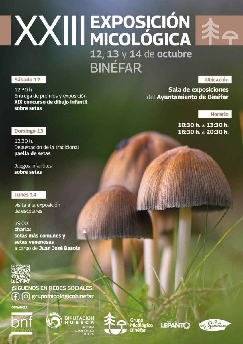 La Concejalía de Medio Ambiente junto al Grupo Micológico de Binéfar organizan las XXIII Exposición Micológica que tendrá lugar la próxima del 12 al 14 de octubre con varias actividades lúdicas y divulgativas dirigidas a profundizar más sobre el atractivo mundo de las setas y los hongos.