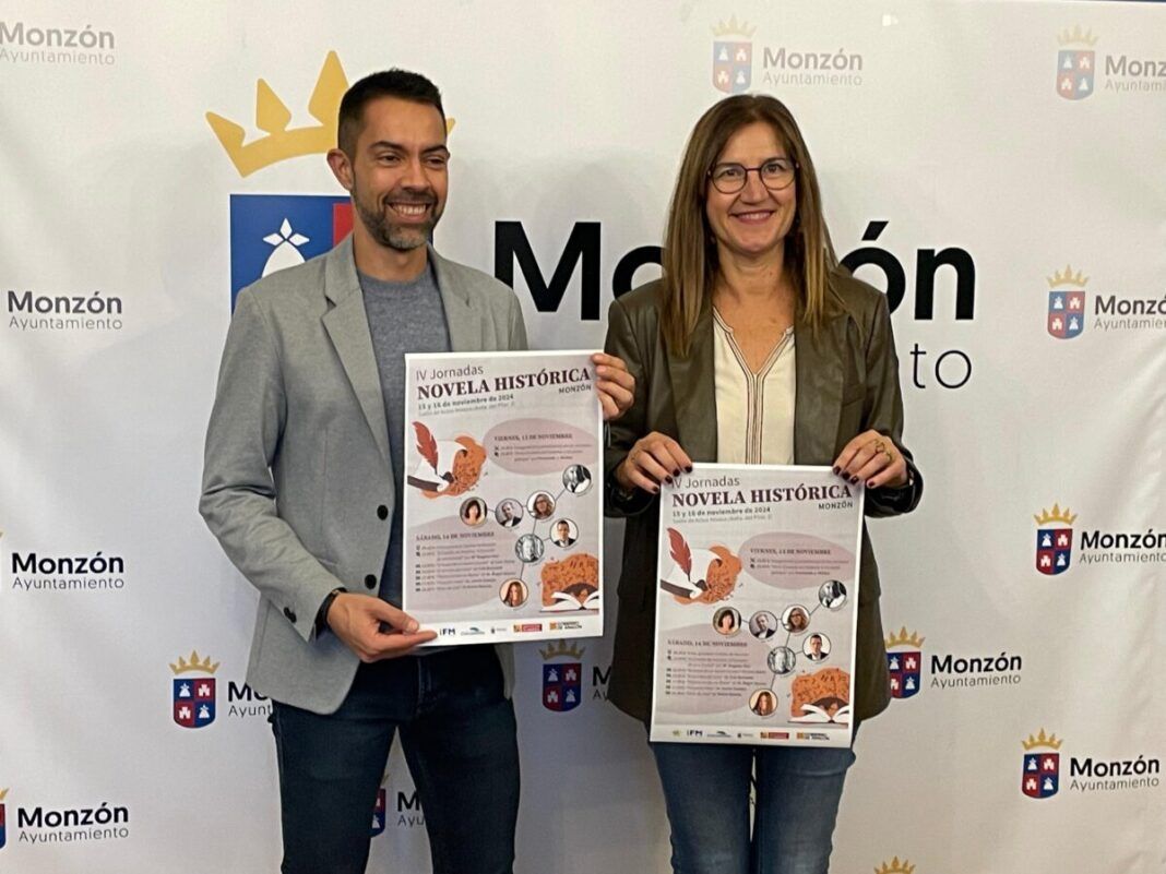 El concejal de Ferias, Jairo Sánchez, y la directora de la Feria del Libro Aragonés, Olga Asensio, han presentado las IV Jornadas de Novela Histórica de Monzón, que se celebran los días 15 y 16 de noviembre en el Salón de Actos Hinaco en la avenida del Pilar, nº 2 y en las que tendrá especial protagonismo el 75 aniversario de la declaración del Castillo como Monumento Histórico- Artístico.