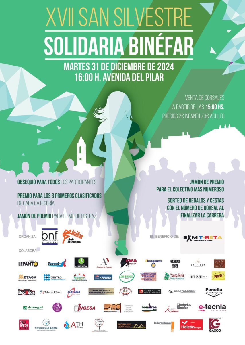 La Concejalía de Deportes del Ayuntamiento de Binéfar y el Club Atletismo Binéfar organizan la popular Carrera Solidaria de San Silvestre que esta Nochevieja -31 de diciembre- por la tarde alcanzará su XVII edición con salida desde la avenida del Pilar a las 16.00 h. El circuito urbano transita la plaza Padre Llanas, Calle Monzón y Calle Miguel Fleta. Alberto Navalón, coordinador del club binefarense nos explica los pormenores de la prueba.