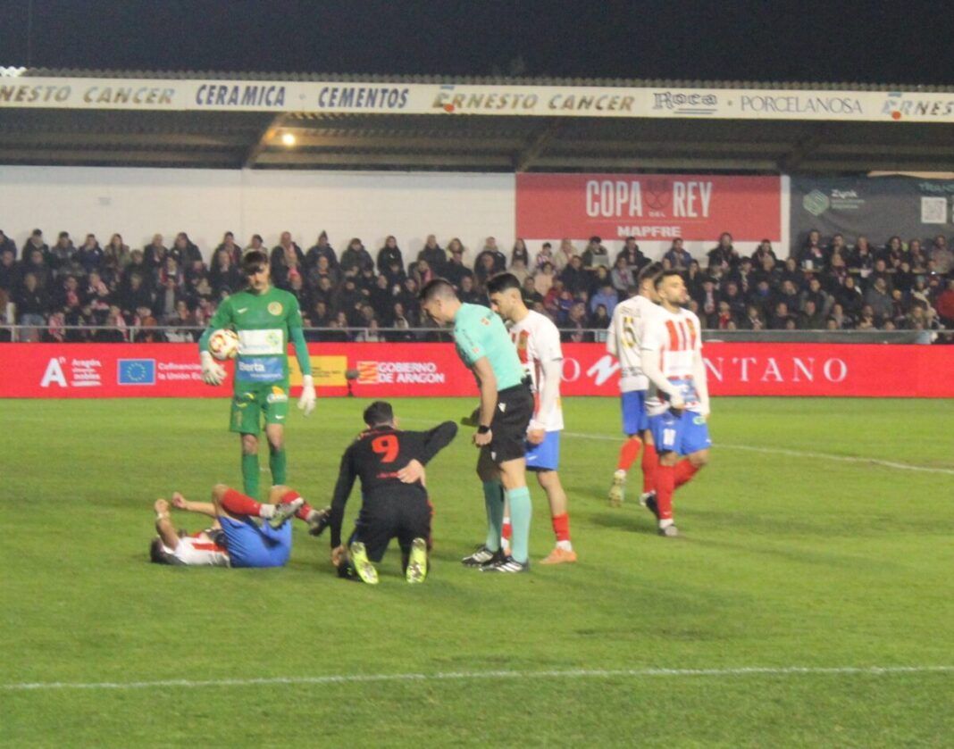 Los barbastrenses resistieron los primeros veinte minutos, hasta que Eric García lograba de cabeza abrir el marcador -ya llevaba el Barça acumulando varias ocasiones claras-. A la media hora de juego, Lewandoski, también de cabeza hacía el segundo para los visitantes, que ponían las cosas muy complicadas para el equipo de Dani Martínez, que era incapaz de tener el balón y generar peligro en campo rival. En la reanudación, de nuevo el polaco mandaba el balón al fondo de la portería y dejaba la eliminatoria vista para sentencia. Poco después, el joven Pablo Torre lograba el cuarto y definitivo tanto. En la última media hora y ya con el partido resuelto, los locales fueron más atrevidos y tuvieron varias oportunidades para haber logrado al menos el gol del honor.