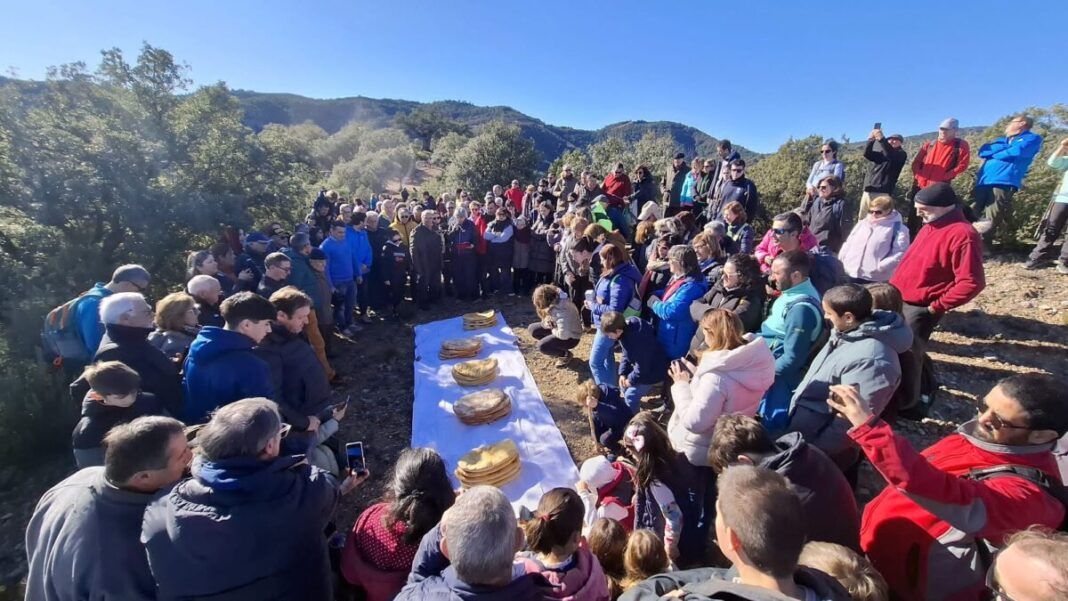 El alcalde de Abizanda ha ahondado en los buenos augurios de sus langostos que este año pronostican que este año 2025 será muy bueno para el cultivo de oliva y cereal. Los langostos verdes y marrones se hacían los protagonistas de este acto tan tradicional sobre el mantel blanco en el que se posan las tortas de caridad, la torta dulce y el vino. “Nadie se quiere perder esta romería y cada vez recibimos más visitantes”, indica Javier Labat que aplaude el interés de muestran muchas personas del campo y de fuera de él.