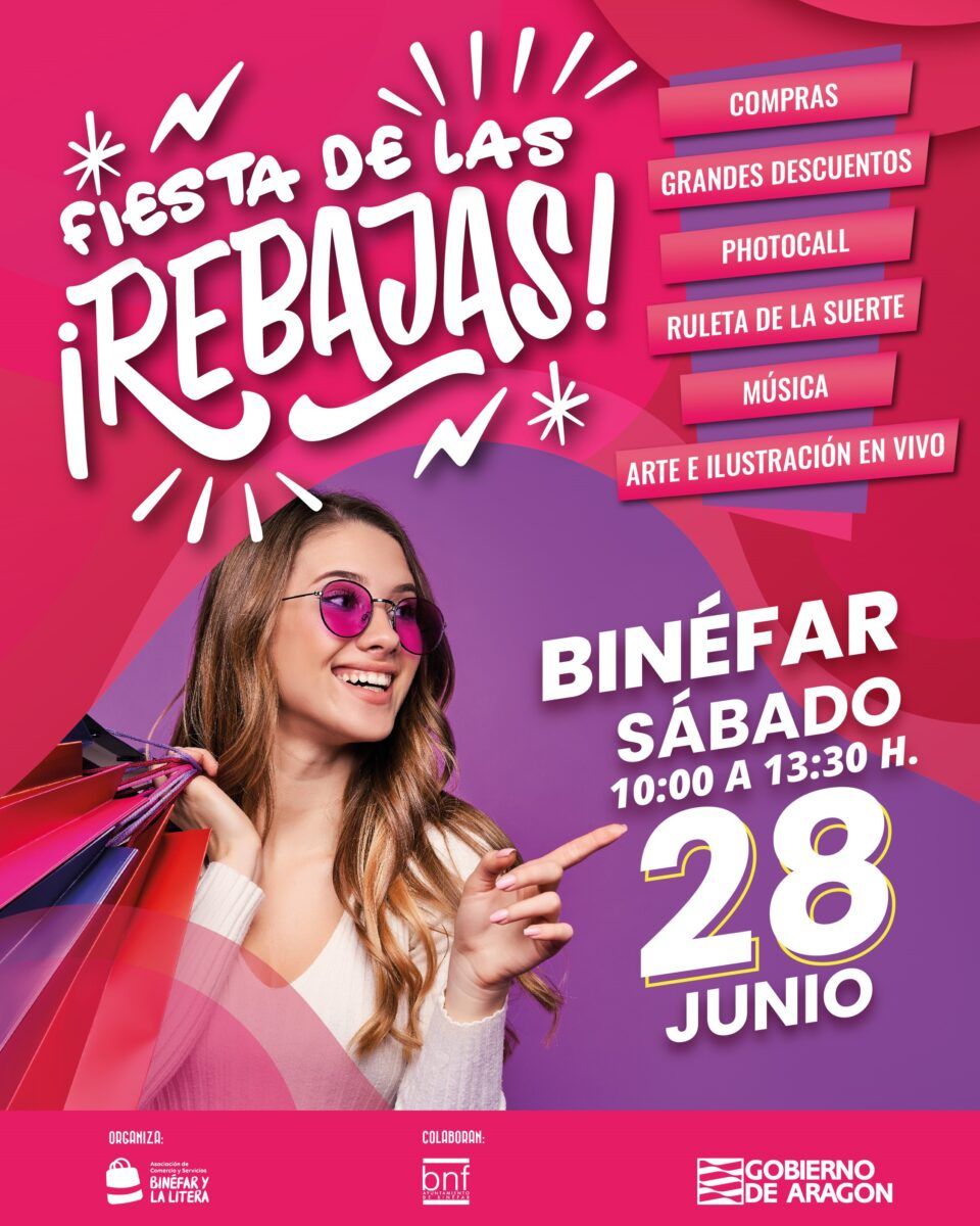 La Fiesta de las Rebajas de Binéfar se traslada a la mañana de este sábado con muchas propuestas que buscan el ahorro en las compras de verano. De 10.00 a 13.30 horas podemos convertirnos en los mejores fans del comercio local de Binéfar. De su celebración hemos hablado con la presidenta de los comerciantes, Ana Gascón, que nos ha invitado a participar en un día “muy importante” para el sector.