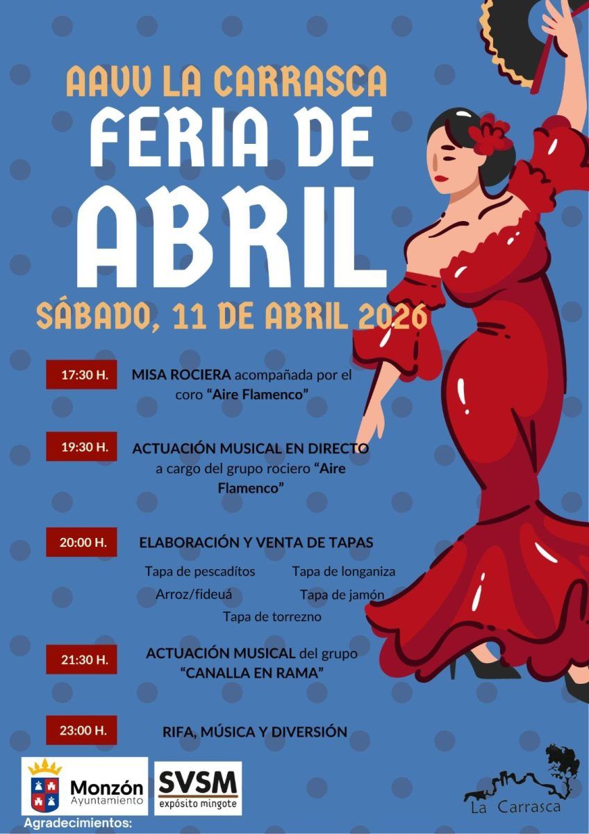 La Asociación de Vecinos del barrio de «La Carrasca» de Monzón celebra este próximo sábado, 11 de abril, la cuarta edición de su «Feria de Abril», una celebración en la que no faltará ningún detalle para celebrar esta tradicionar fiesta con origen en el sur de España. Misa rociera, música en directo, elaboración y venta de tapas, rifa y mucha diversión son los ingredientes para disfrutar de una jornada que comenzará a las 17.30 horas y que se prolongará hasta la madrugada. De todo ello nos habla el presidente de la asociación, Javier Altermir.